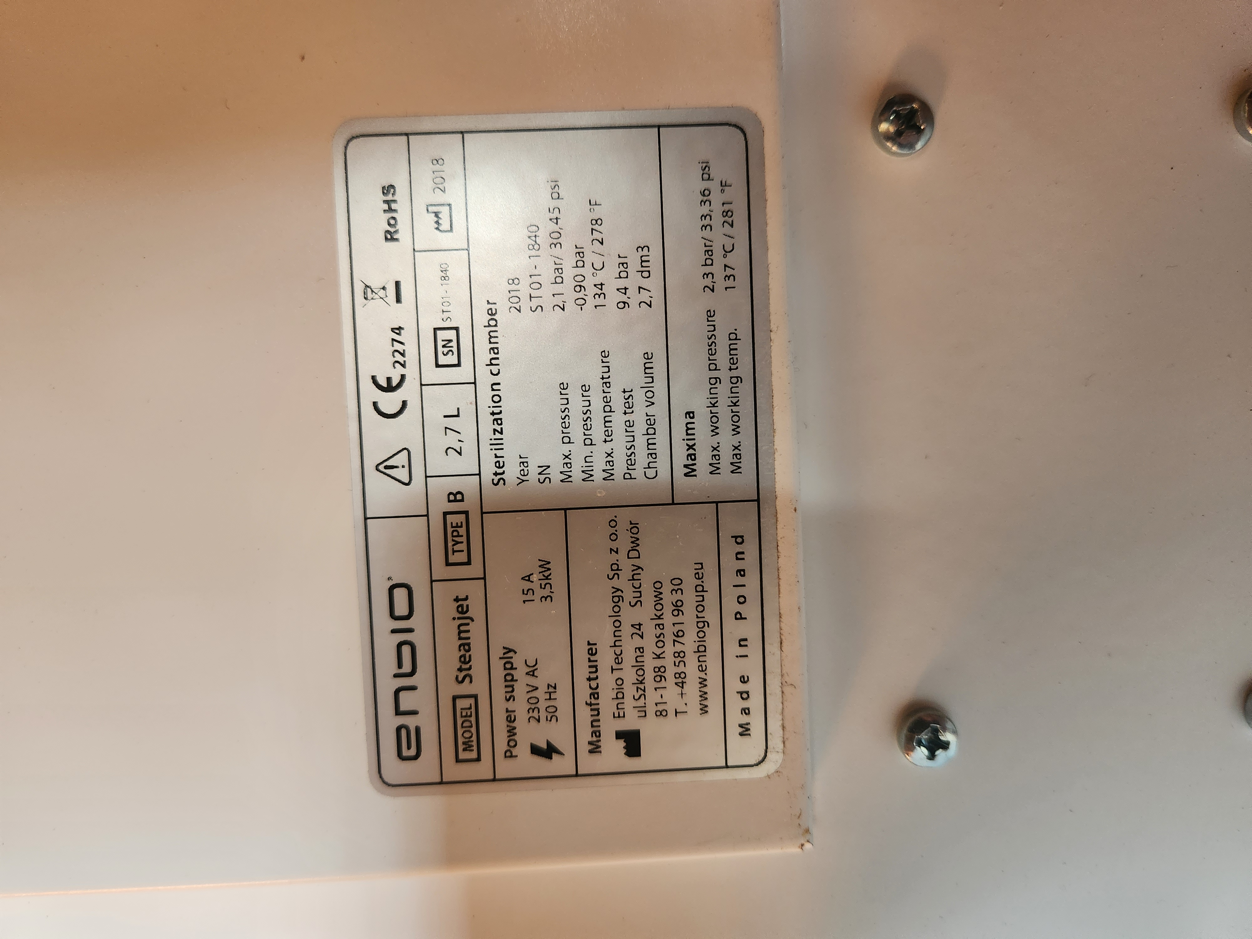 Sterylizator zakupiony w 04.2018 i używany sporadycznie przez rok w salonie.