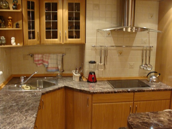 Kuchnia otwarta z pełnym wyposażeniem. Meble, wbudowane w meble AGD - zlew, lodówka, zamrażarka, zmywarka, kuchnia indukcyjna; kuchenka mikrofalowa. Bar.